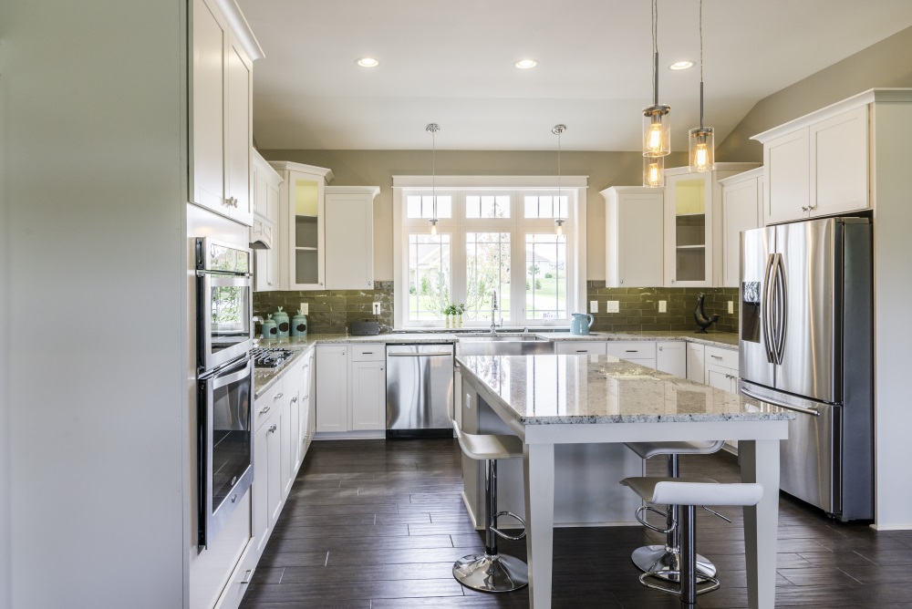 The home pictured above and below is just one example of our design and building capabilities. Built in Caledonia, WI, we helped maximize the square footage of this house with an open floor plan that floods the great room with natural light. The beautiful, modern lighting fixtures and appliances used throughout the house will match any interior style. Three bedrooms and a home office also provide plenty of space for most families. From the exterior to interior, every detail was carefully considered.